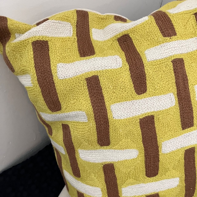 Handmade cushion cover yellow/brown/white