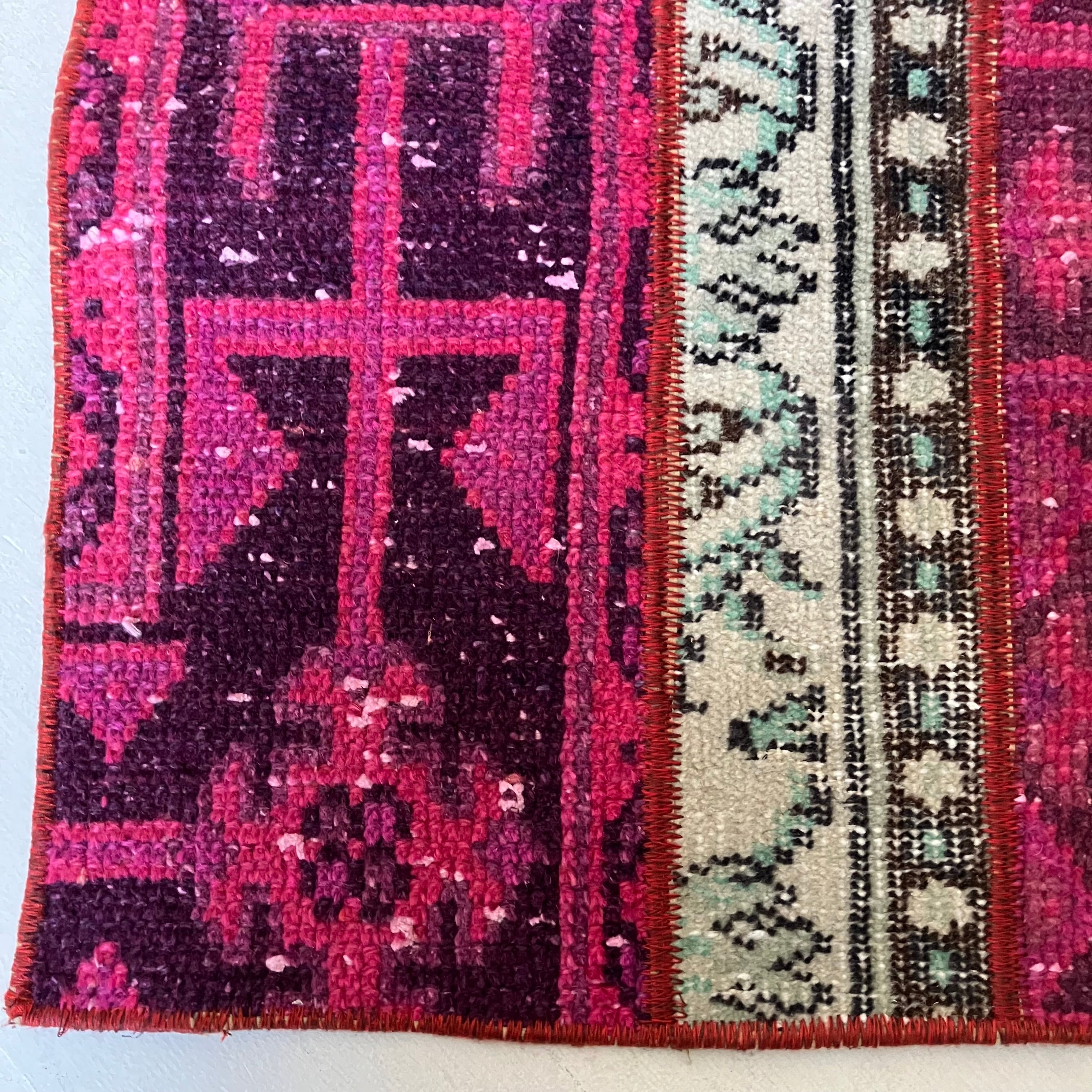鮮やかなピンク色が印象的な古いトルコのパッチワークキリム。