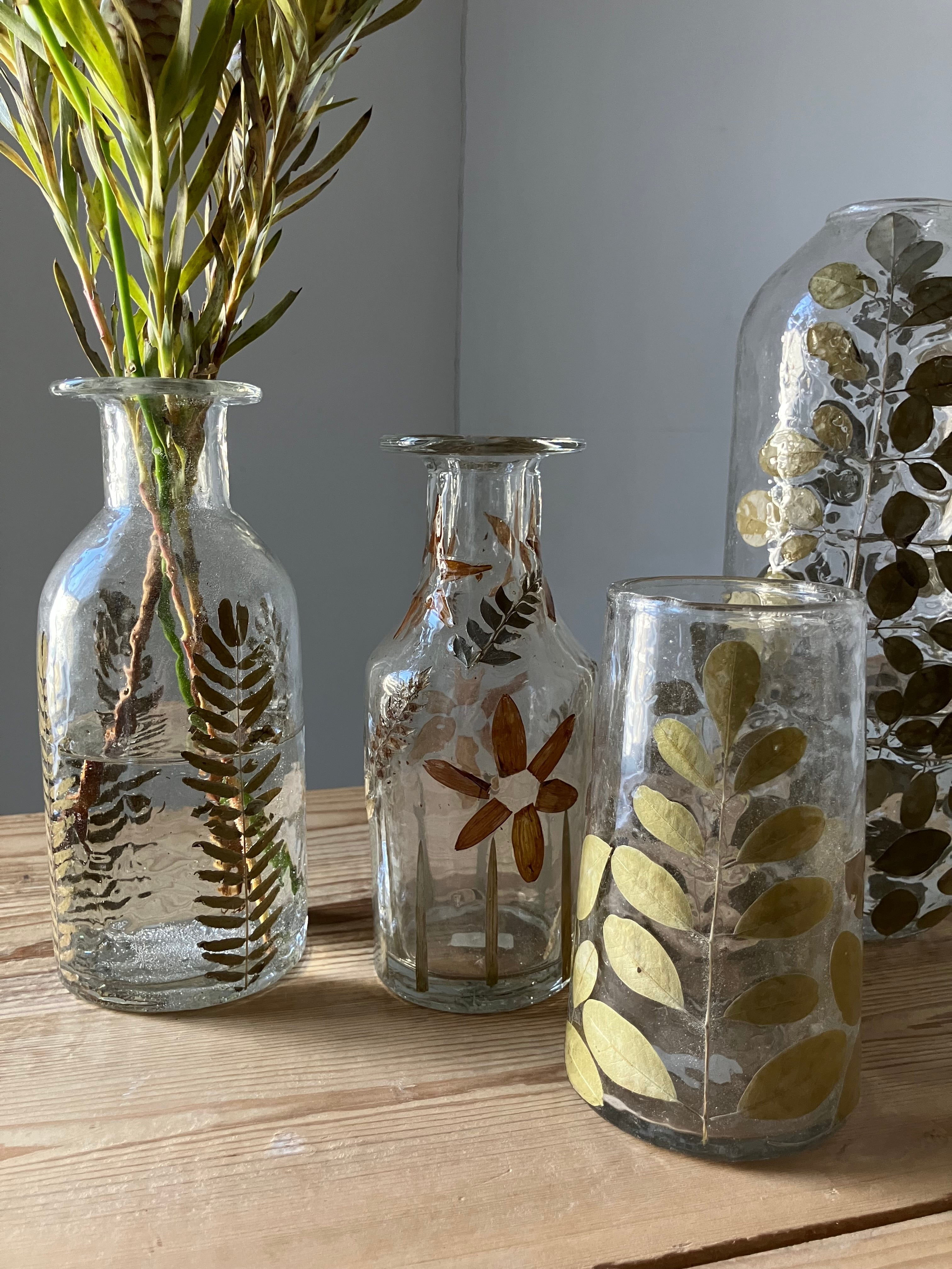 押し花や押し葉をガラスに取り込んだフラワーベース。