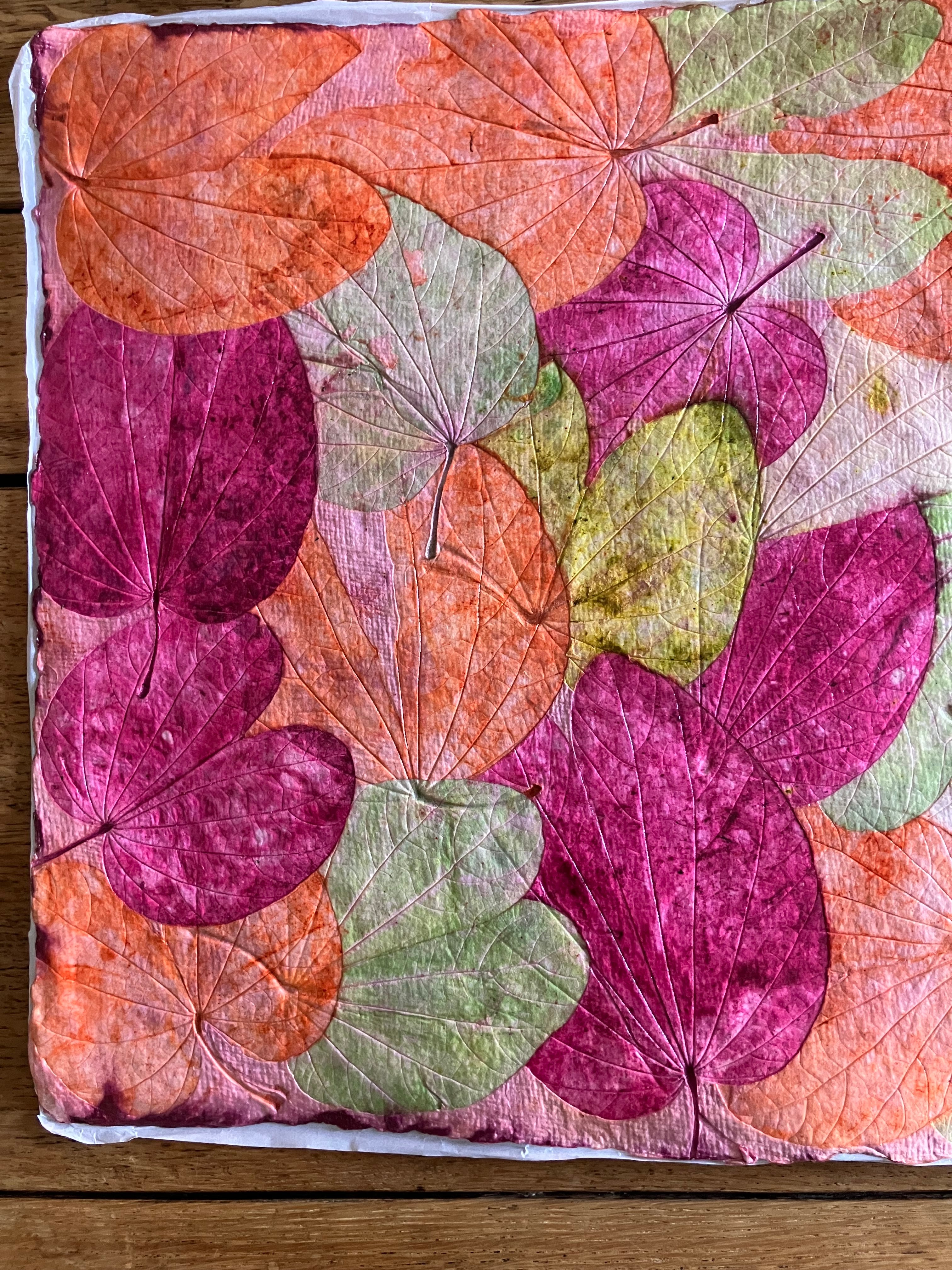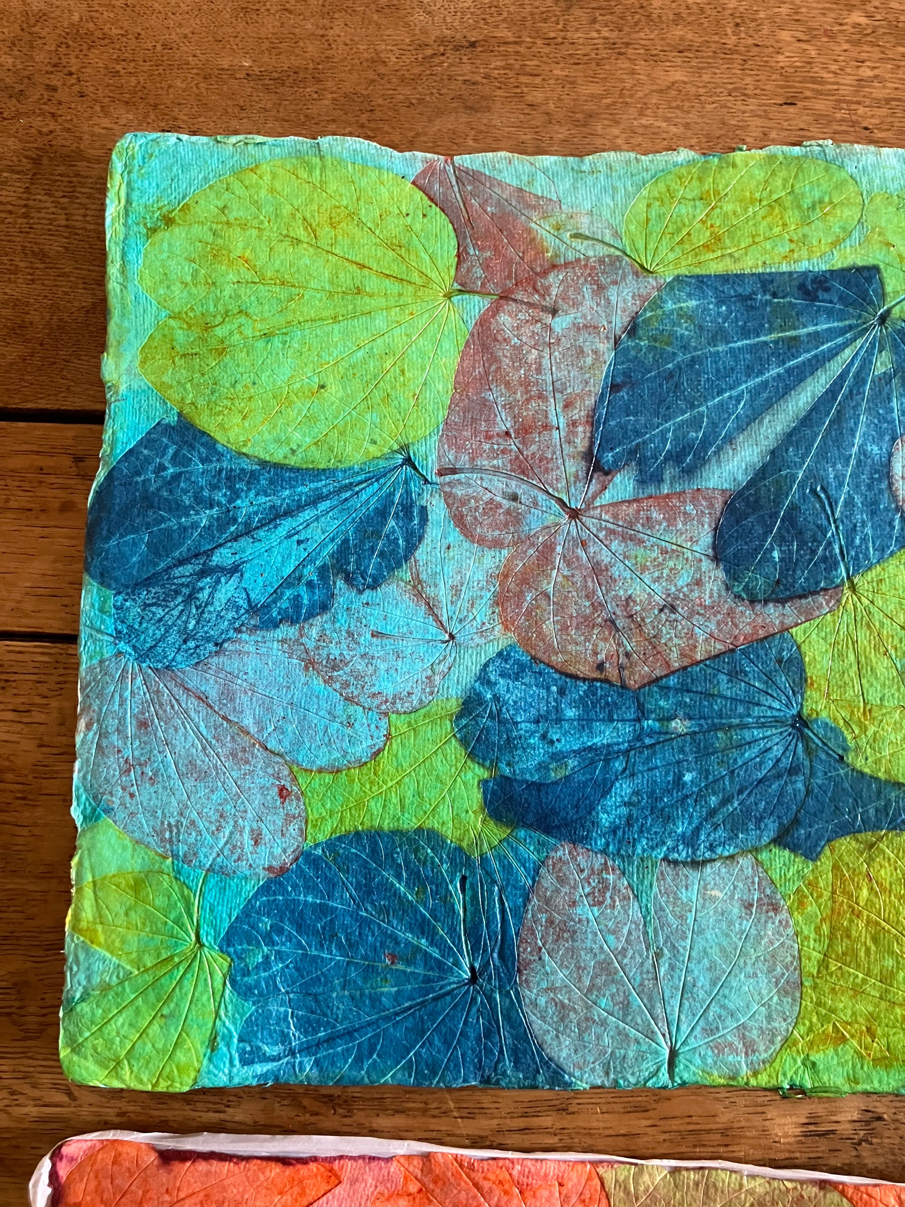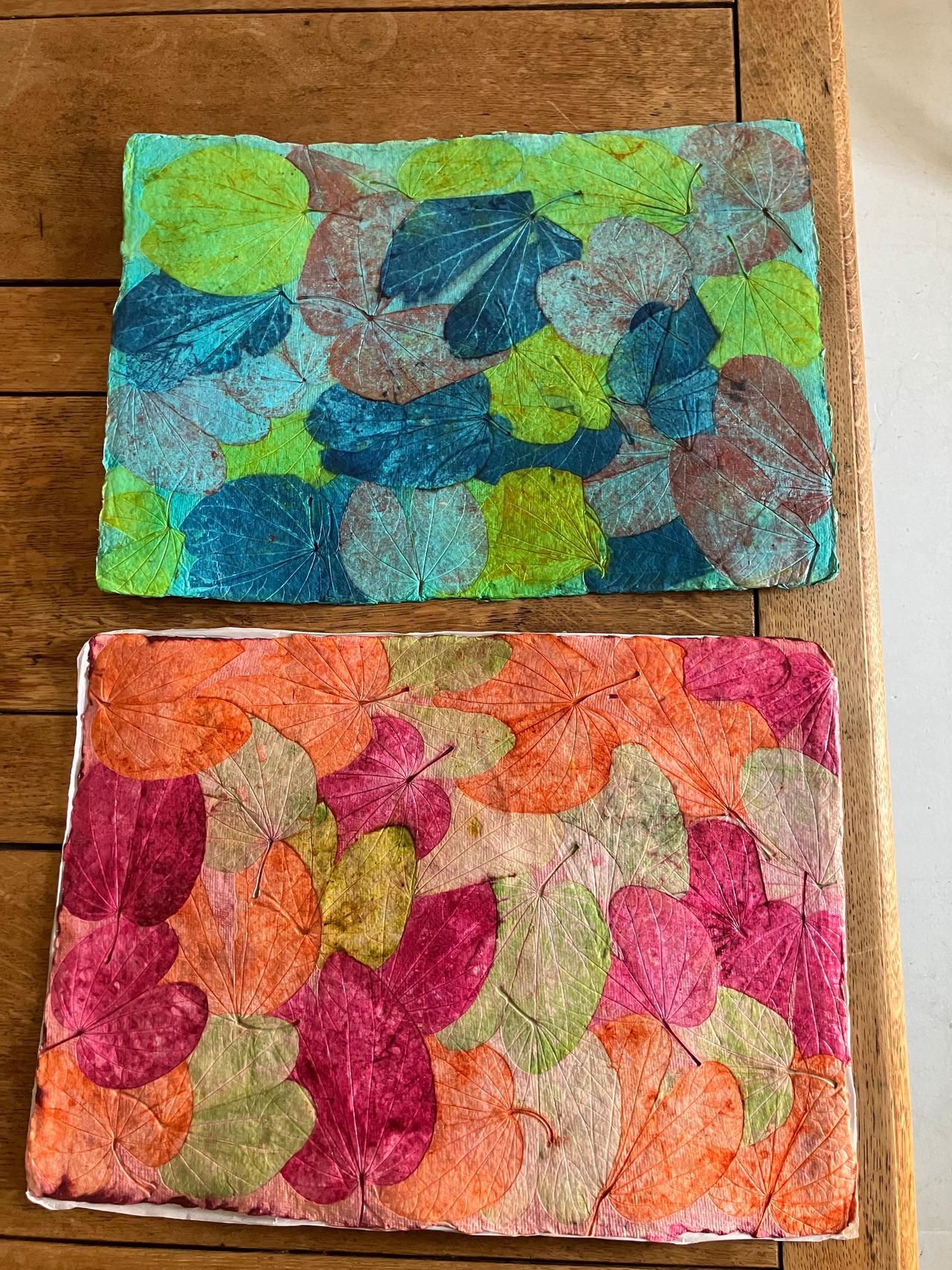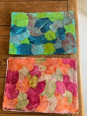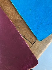 インドのハンドメイドペーパー。和紙のような厚手の紙に防災加工を施してランチョンマットとして使用できます。花瓶や水気のあるものの下にしいたり、壁に飾ったりといろいろと楽しめます。