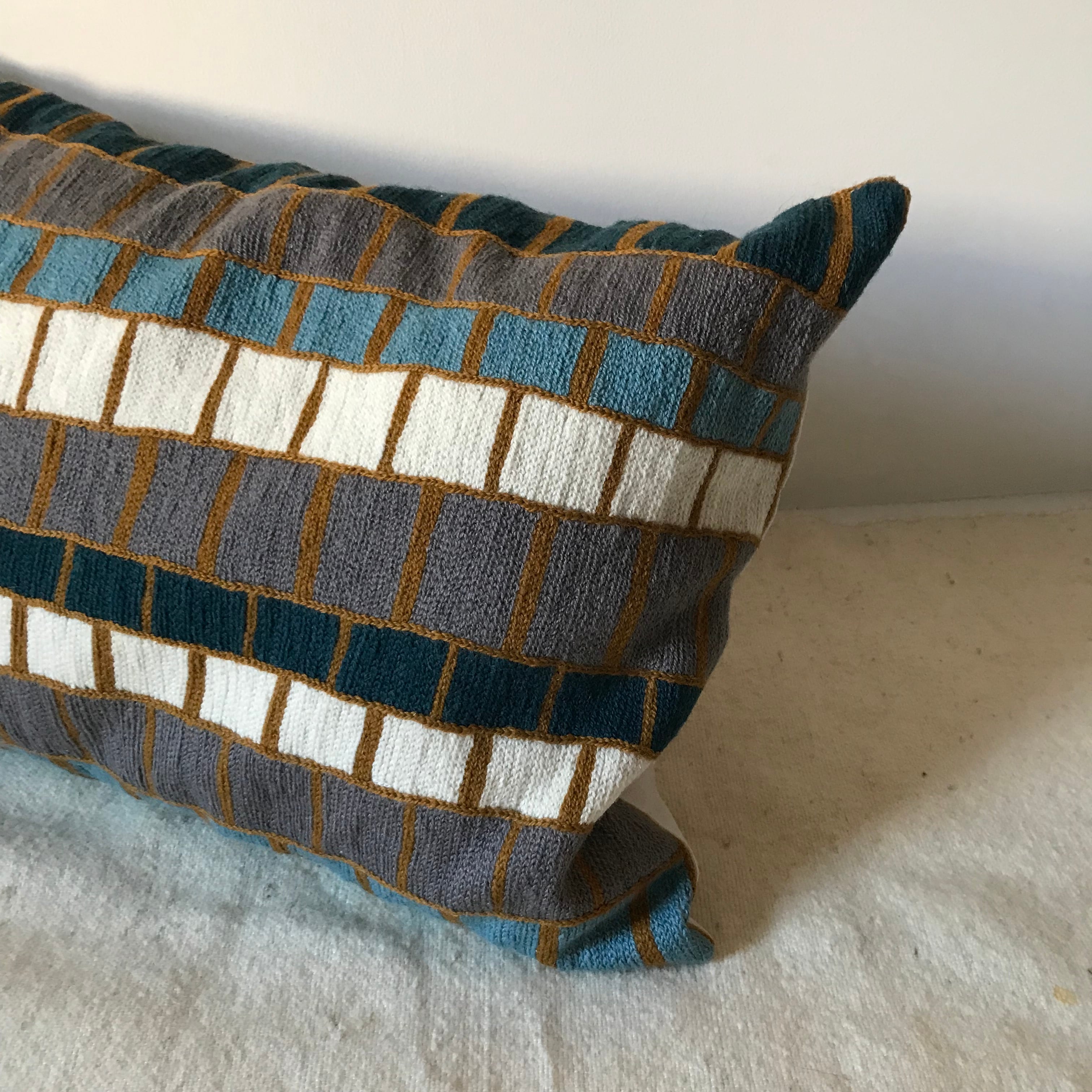 手刺繍で一つずつ丁寧に作られるクッションカバー。