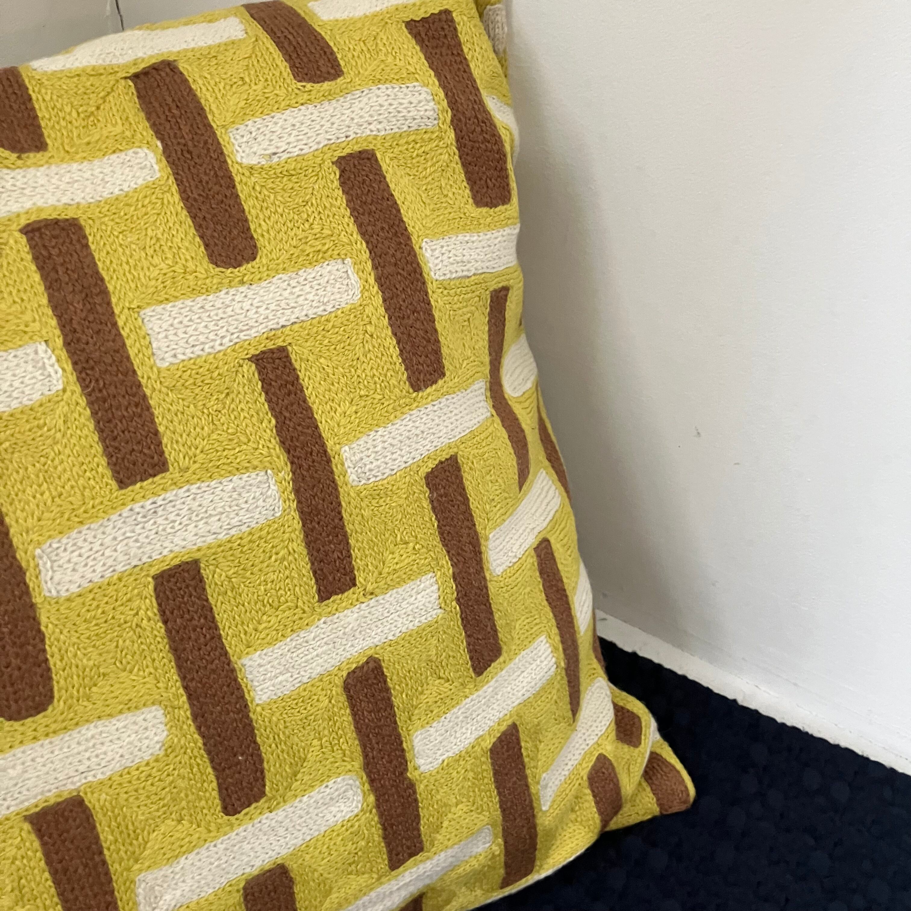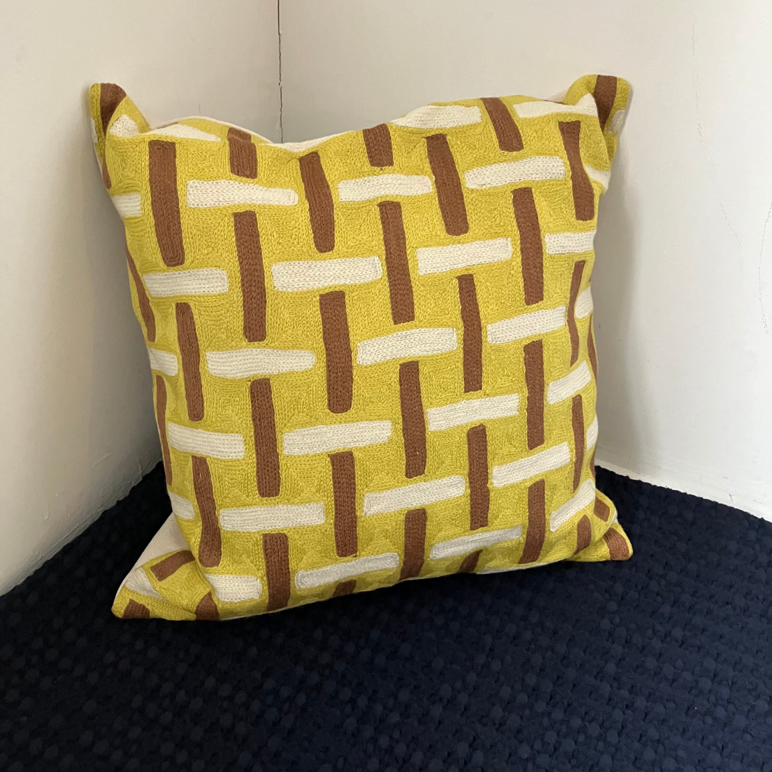Handmade cushion cover yellow/brown/white