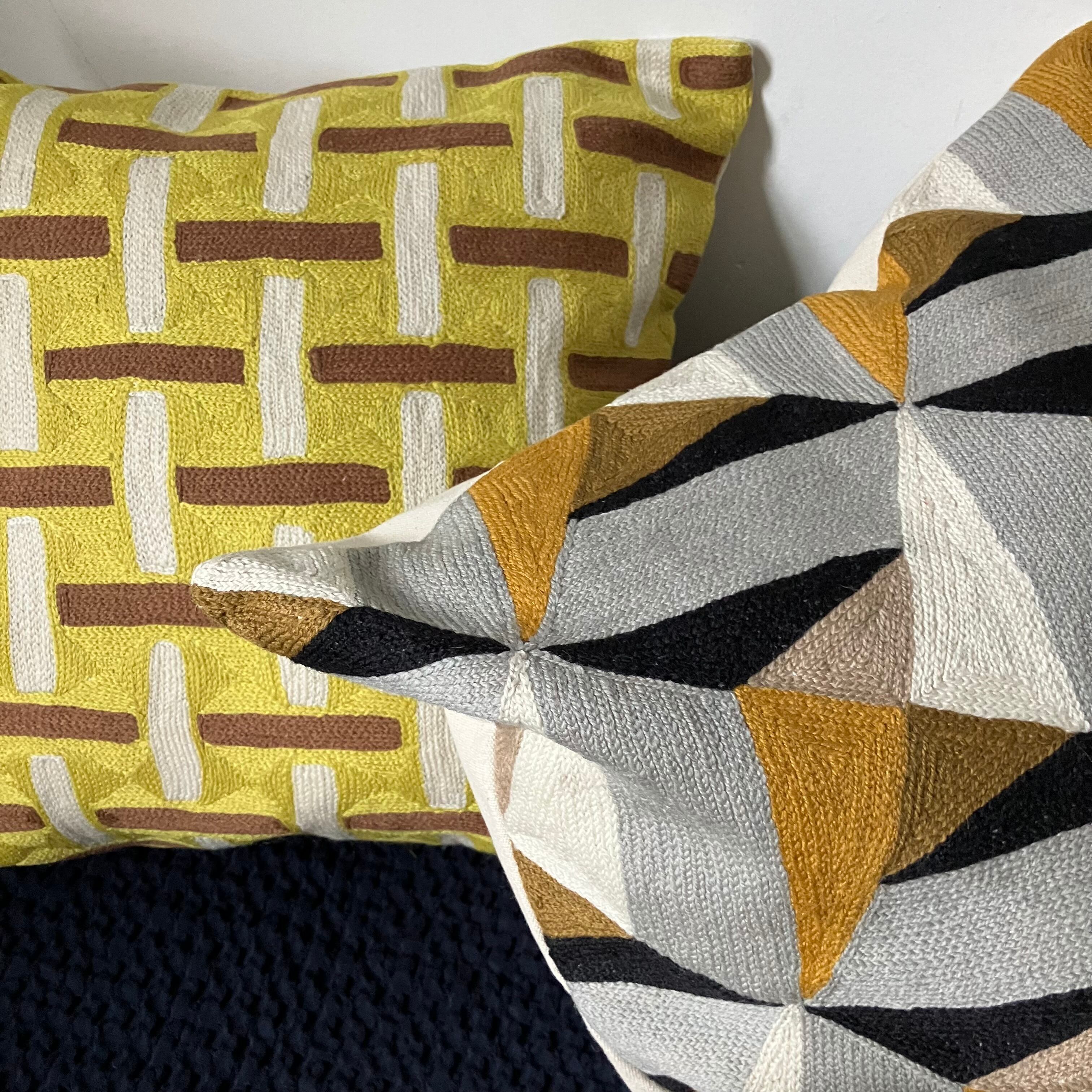 手刺繍で一つずつ丁寧に作られるクッションカバー。